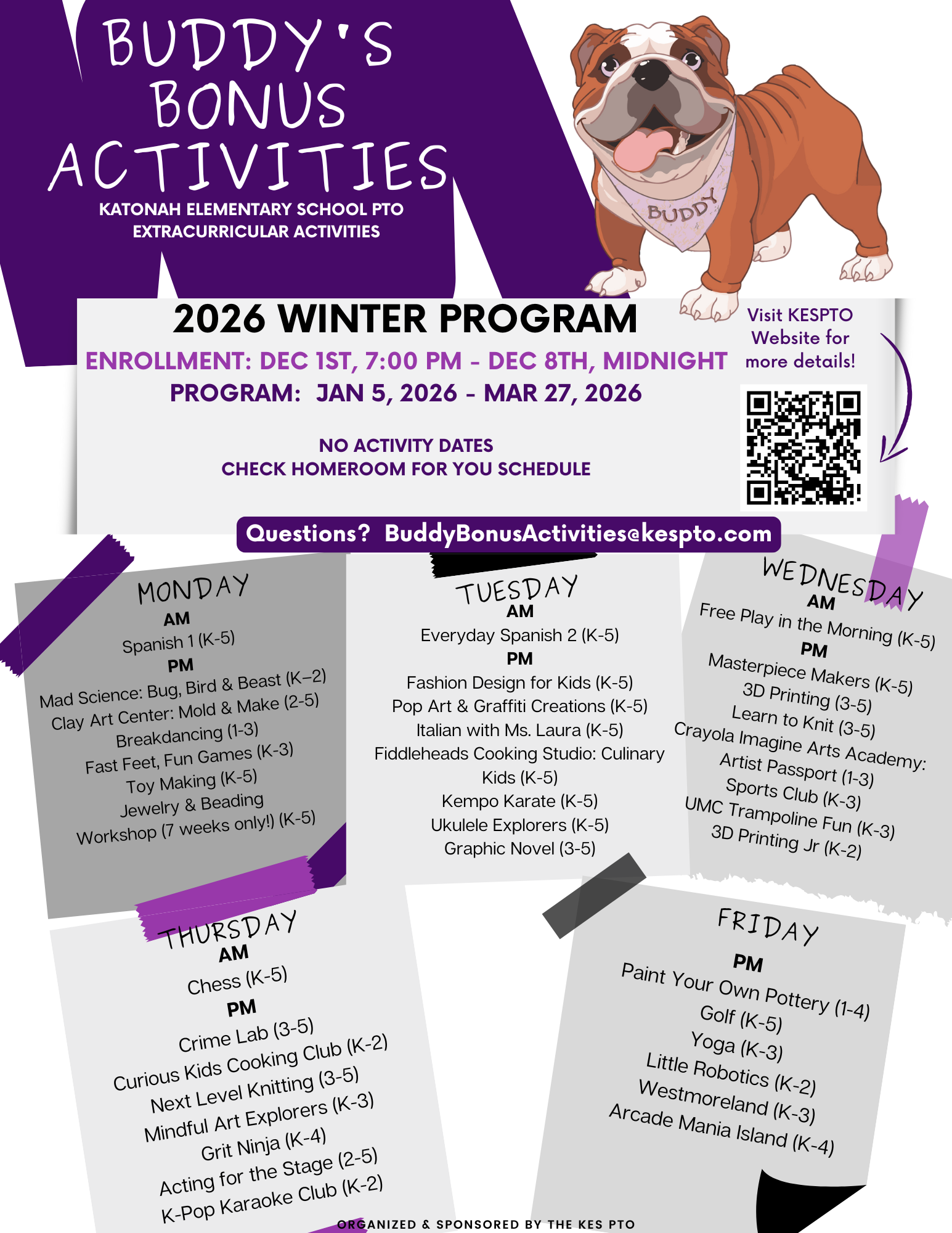 We have created a fantastic lineup of competitively-priced activities, with proceeds benefiting other KES PTO programs.